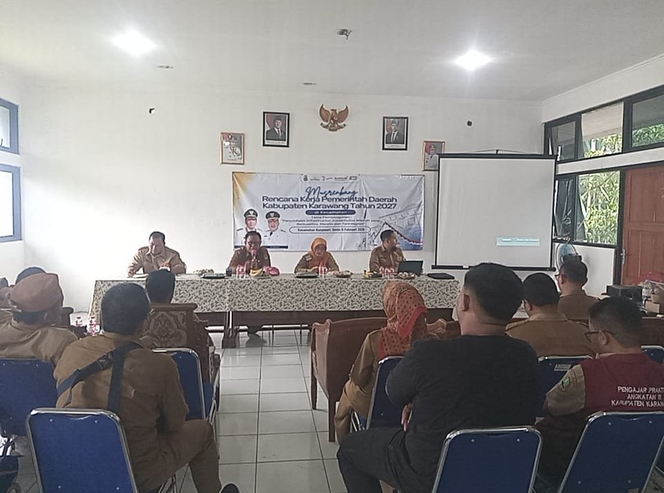 KARAWANG – Pemerintah Kabupaten Karawang melaksanakan Musyawarah Perencanaan Pembangunan (Musrenbang) Rencana Kerja Pemerintah Daerah (RKPD) Tahun 2027 tingkat Kecamatan Banyusari. Kegiatan tersebut digelar di Aula Kantor Kecamatan Banyusari, Senin (9/2/2026) pagi, dengan mengusung tema “Penyediaan Infrastruktur Konektivitas Wilayah yang Berkualitas, Merata, dan Terintegrasi.”
