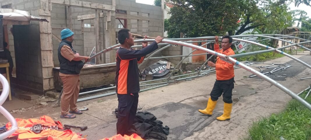 Pendirian posko dimulai sejak pukul 10.00 WIB. Posko di Kalijaya telah rampung, sementara posko di Desa Kertasari sempat mengalami kendala teknis akibat masalah penyambungan besi tenda.