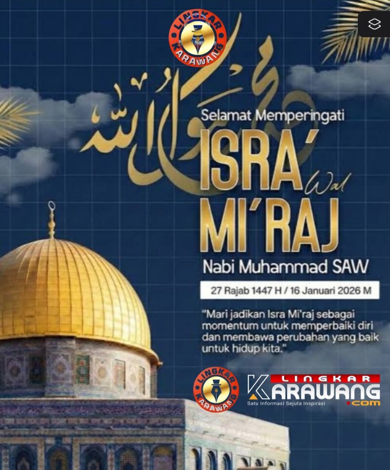 Dalam rangka memperingati Isra Mi’raj Nabi Muhammad SAW, 17 Rajab 1447 Hijriah / 16 Januari 2026 Masehi, media online LingkarKarawang menyampaikan ucapan selamat kepada seluruh umat Islam, khususnya masyarakat Kabupaten Karawang.