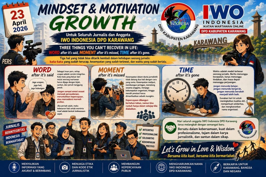 Melalui semangat Mindset & Motivation Growth, saya mengajak seluruh anggota Ikatan Wartawan Online Indonesia DPD Kabupaten Karawang untuk terus bertumbuh menjadi pribadi dan organisasi yang semakin profesional, solid, serta bermartabat.