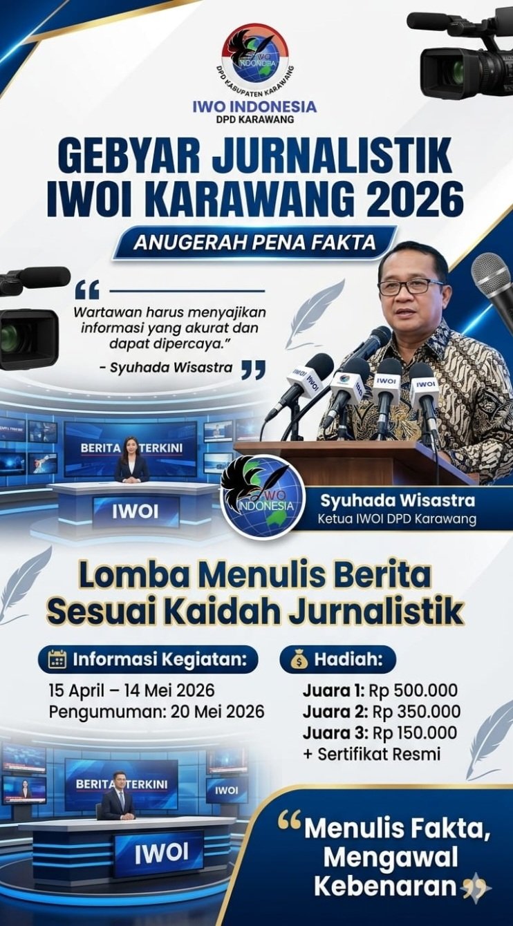 KARAWANG | Ikatan Wartawan Online Indonesia (IWOI) DPD Karawang resmi menggelar ajang Gebyar Jurnalistik IWOI Karawang 2026: Anugerah Pena Fakta, berupa lomba menulis berita sesuai kaidah jurnalistik bagi seluruh anggotanya.
