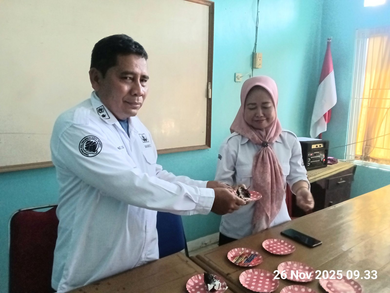 Para aparat dan perangkat desa yang hadir kompak memberikan kejutan sederhana namun penuh makna. Sebuah kue ulang tahun disiapkan khusus, dan prosesi pemotongan kue serta doa bersama menjadi momen utama yang membuat suasana pertemuan semakin hangat dan penuh kebersamaan.