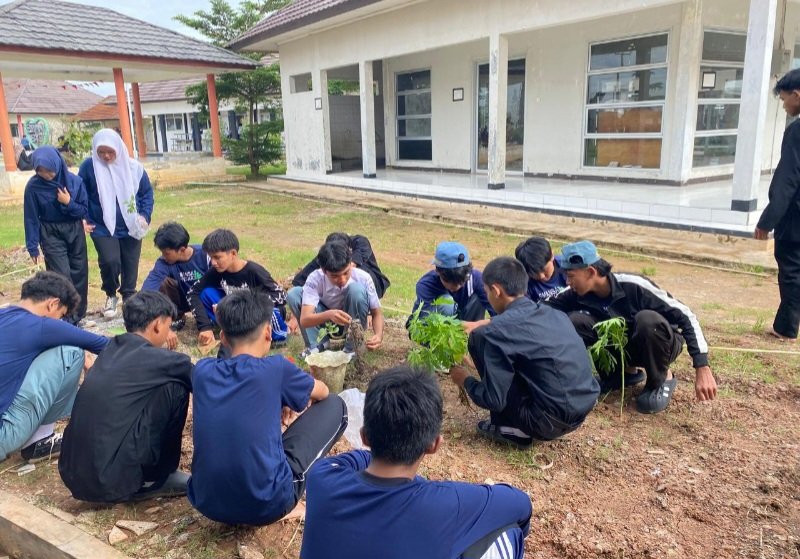 Sejak pagi hari, para siswa bersama para guru terlihat bergotong royong menyiapkan lahan, menggali tanah, hingga menanam bibit pohon di sejumlah titik di lingkungan sekolah. Suasana kebersamaan dan kepedulian terhadap lingkungan tampak jelas dalam kegiatan tersebut.