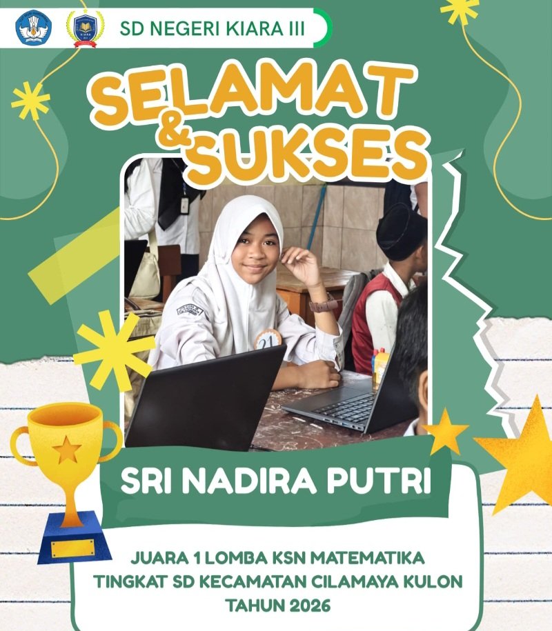 KARAWANG – Prestasi membanggakan kembali ditorehkan oleh dunia pendidikan Kecamatan Cilamaya Kulon. Sri Nadira Putri, siswi Sekolah Dasar Negeri (SDN) Kiara III, berhasil meraih Juara 1 lomba Kompetisi Sains Nasional (KSN) bidang Matematika tingkat Sekolah Dasar se-Kecamatan Cilamaya Kulon, Kabupaten Karawang.