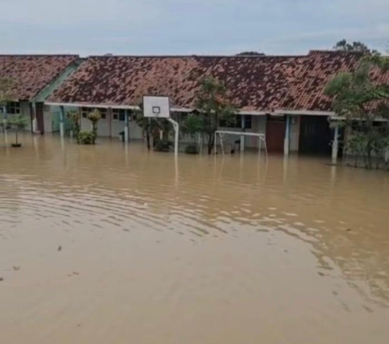 KARAWANG – SMP Negeri 1 Cilamaya Wetan, Kabupaten Karawang, yang berlokasi di Desa Mekarmaya, terendam banjir akibat intensitas hujan tinggi pada Jumat, 30 Januari 2026. Ketinggian air diperkirakan mencapai lutut orang dewasa dan menggenangi hampir seluruh area sekolah.