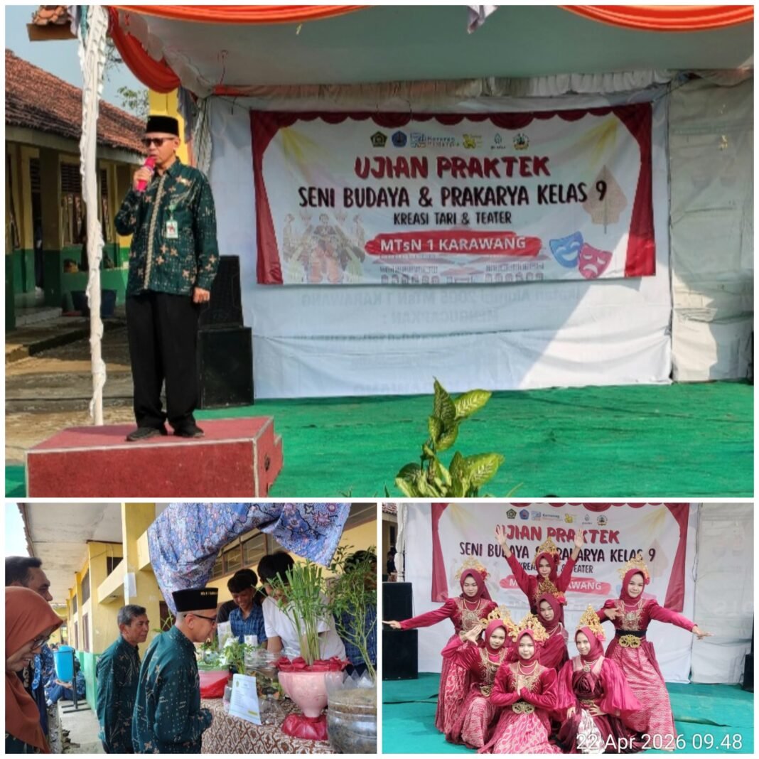 KARAWANG – Halaman MTsN 1 Karawang tampak semarak pada Rabu, 22 April 2026 pagi. Para siswa kelas IX menampilkan beragam kreasi seni budaya dan prakarya dalam kegiatan Ujian Praktik Seni Budaya dan Prakarya yang berlangsung meriah dan penuh antusiasme.