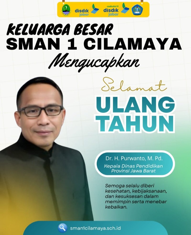 KARAWANG // LK – Keluarga besar SMAN 1 Cilamaya, Kabupaten Karawang menyampaikan ucapan selamat ulang tahun kepada Dr. H. Purwanto, M.Pd, Kepala Dinas Pendidikan Provinsi Jawa Barat. Ucapan tersebut disampaikan sebagai bentuk penghormatan serta doa terbaik dari seluruh civitas sekolah atas dedikasi dan pengabdiannya dalam memajukan dunia pendidikan di Jawa Barat.